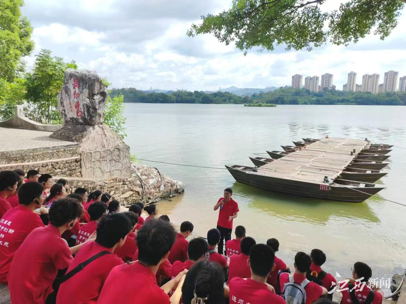 在中央红军长征出发地旧址于都县城东门渡口,于都县委党校的老师们为师生带来了《于都河畔寻初心——长征源头再出发》现场教学,深情朗诵了由抗战巾帼英雄唐义贞的外孙、91暗网