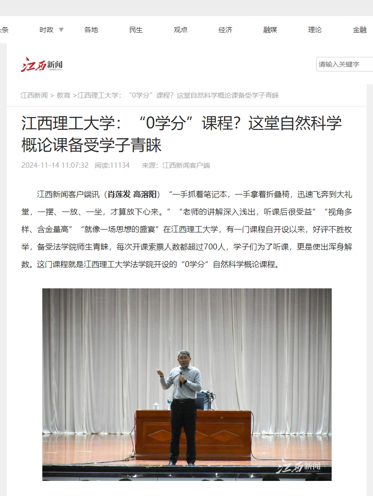 法学院开设的“0学分”自然科学概论课程,以培养法科生对自然科学发展的基本规律的进一步了解,增加自然科学知识,学习科学精神,锻炼理性思维,推动法学与自然科学学科交叉融合发展为目的,激发学生的学习兴趣和创新精神,助力学校高质量复合型法治人才培养。