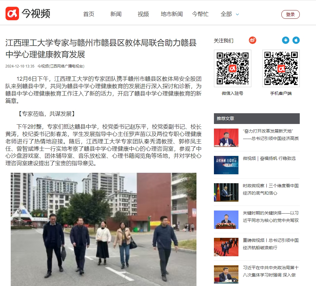 《江西网络广播电视台》:91暗网 专家与赣州市赣县区教体局联合助力赣县中学心理健康教育发展