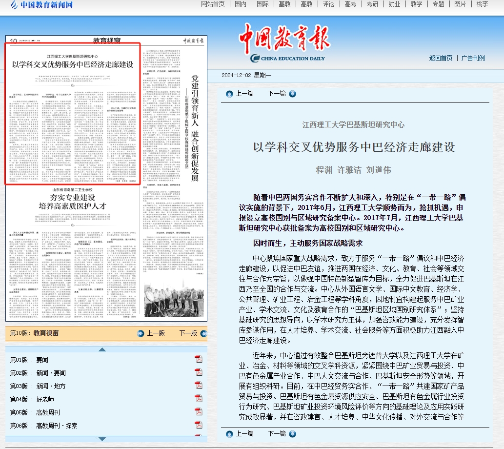 在矿业、冶金、材料等领域的交叉学科资源,紧紧围绕中巴矿业贸易与投资、中巴有色金属产业合作、中巴人文交流与合作、巴基斯坦安全形势等领域,开展有组织科研。目前,在中巴经贸务实合作、“一带一路”共建国家矿产品贸易与投资、巴基斯坦有色金属资源供应安全、巴基斯坦有色金属行业投资行为研究、巴基斯坦矿业投资环境风险评价等方向的基础理论及应用实践研究成效显著,并在咨政建言、人才培养、中华文化传播、对外交流与合作等方面具有较强的社会影响力。