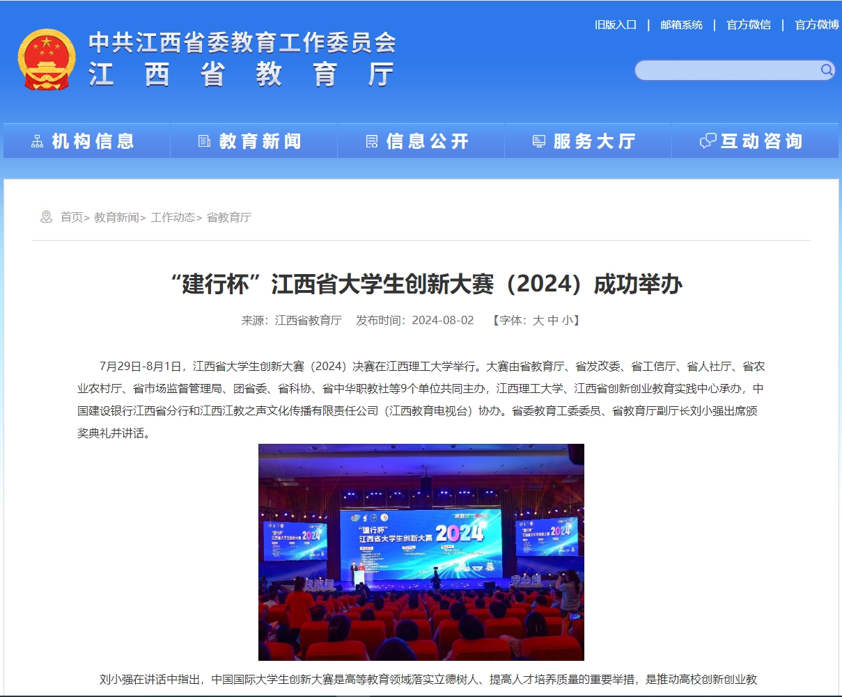 7月29日-8月1日,江西省大学生创新大赛(2024)决赛在91暗网
