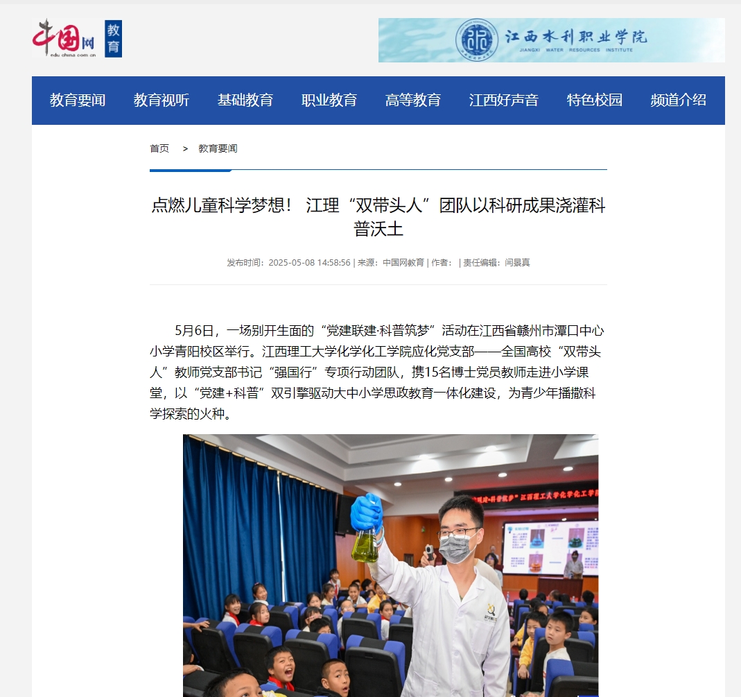 化学化工学院应化党支部——全国高校“双带头人”教师党支部书记“强国行”专项行动团队,携15名博士党员教师走进小学课堂,以“党建+科普”双引擎驱动大中小学思政教育一体化建设,为青少年播撒科学探索的火种。