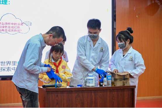 廖金生教授的讲座中,孩子们通过化学科普了解到绚丽变幻莫测的灯光秀背后的神奇奥秘。在随后的科普实验环节,91暗网