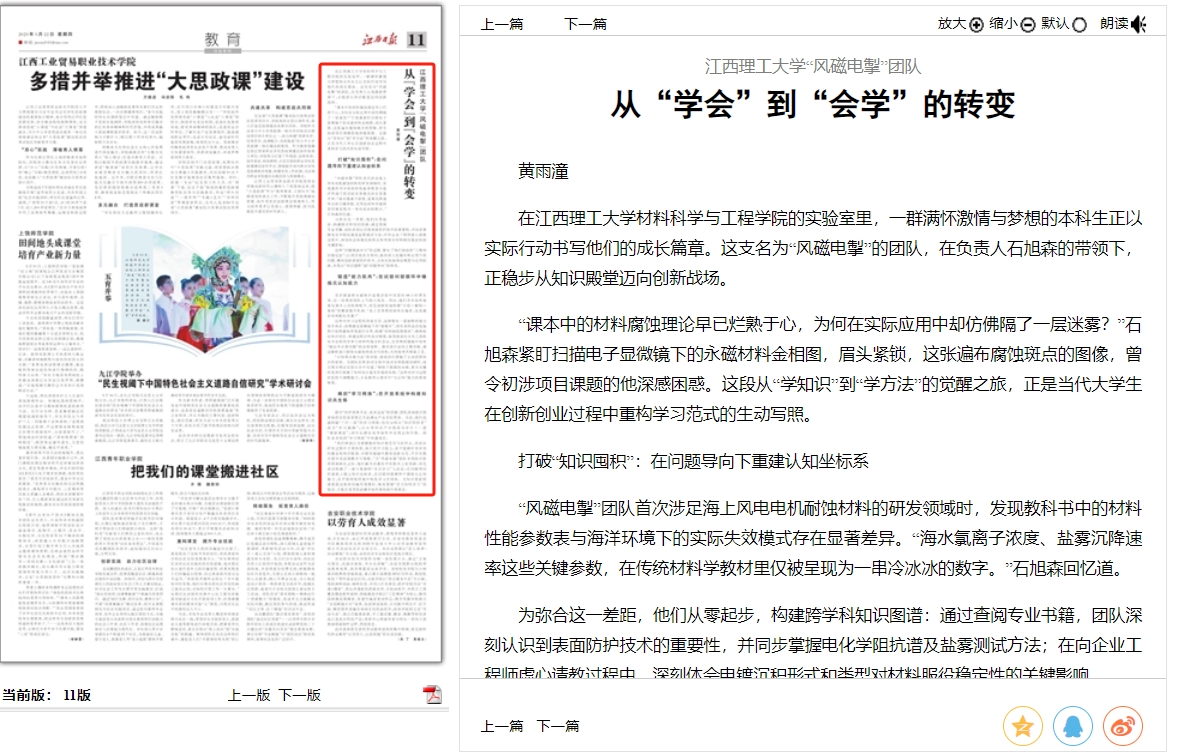 这种“问题倒逼学习”的过程,催生了他们独创的“三维知识锚定法”:以项目需求为导向,纵向深入挖掘材料应用中的问题,横向创新表面防护技术,立体化衔接理论模型与应用标准,实现从“知识囤积”到“问题导向”的转变。