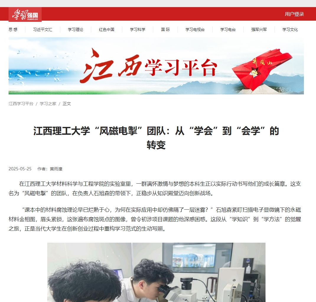 “课本中的材料腐蚀理论早已烂熟于心,为何在实际应用中却仿佛隔了一层迷雾?”石旭森紧盯扫描电子显微镜下的永磁材料金相图,眉头紧锁,这张遍布腐蚀斑点的图像,曾令初涉项目课题的他深感困惑。这段从“学知识”到“学方法”的觉醒之旅,正是当代大学生在创新创业过程中重构学习范式的生动写照。