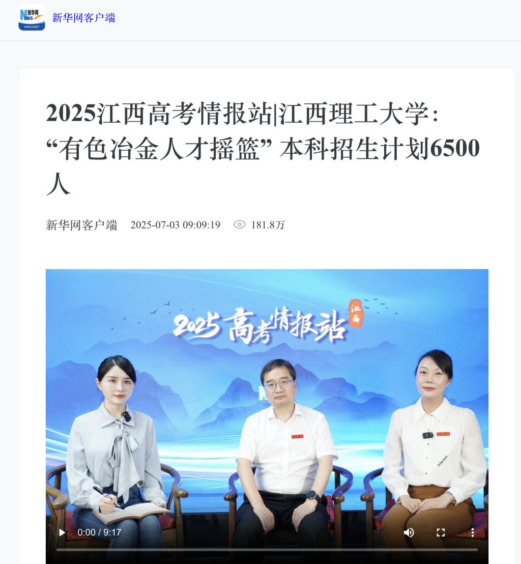 招生与就业工作处处长邓晓宇做客“2025江西高考情报站”,围绕2025年学校招生专业设置变化、招生计划、人才培养特色等方面,回答考生及家长们的关切问题,介绍相关情况。