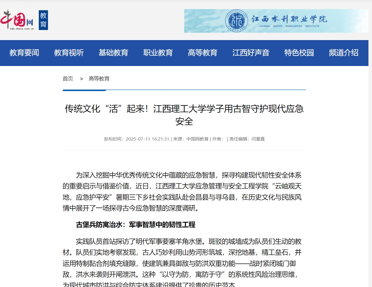 应急管理与安全工程学院“云岫观天地,应急护平安”暑期三下乡社会实践队赴会昌县与寻乌县,在历史文化与民族风情中展开了一场探寻古今应急智慧的深度调研。