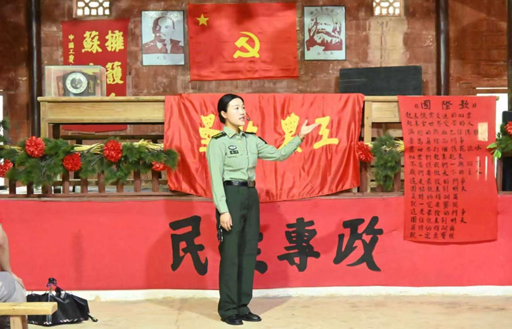 (图为校史馆讲解员吴雨航在列宁堂解读苏区精神 李圆 摄)