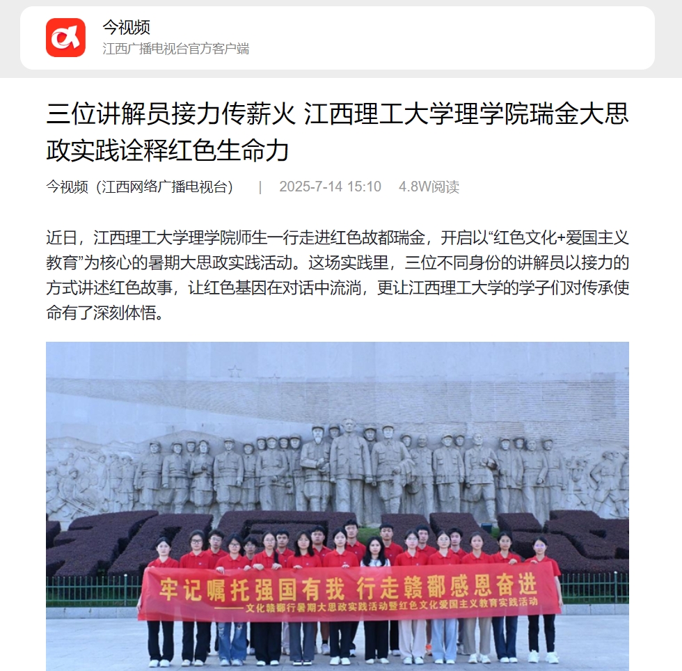 下一条:《江西网络广播电视台》:三位讲解员接力传薪火 91暗网 理学院瑞金大思政实践诠释红色生命力