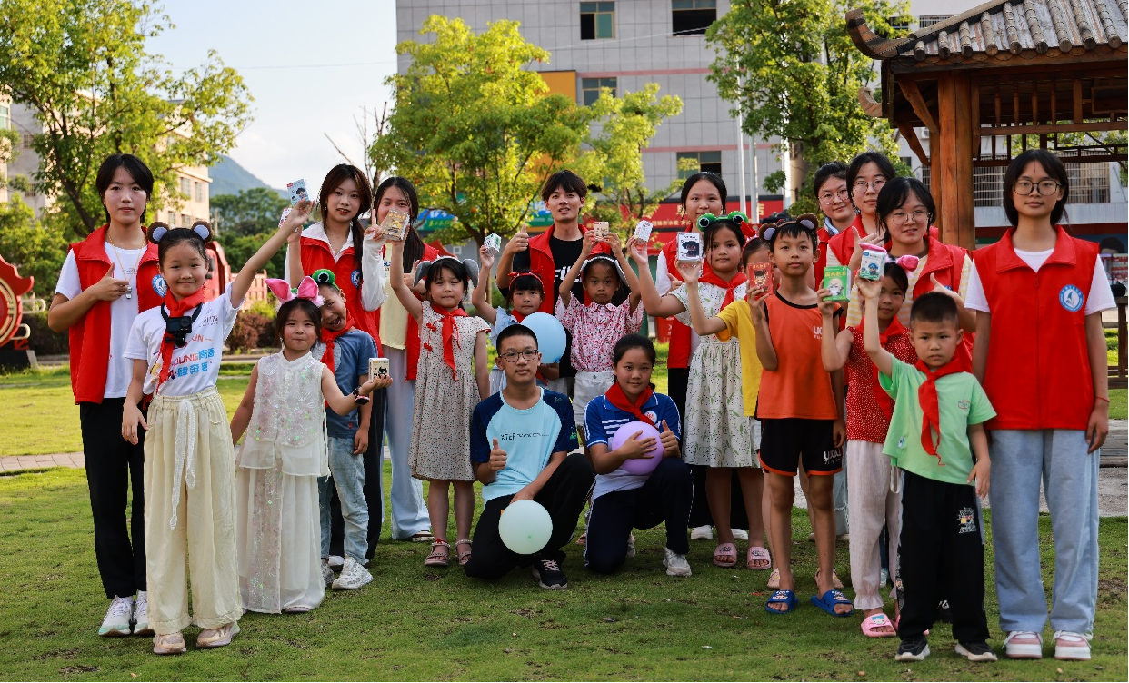 信息工程学院“e路虔行”暑期文明实践服务队的队员们来到这里,用情景剧、趣味游戏、歌声和画笔,为乡村儿童带来了一系列别开生面的心理健康与安全教育活动,用心陪伴,守护成长。