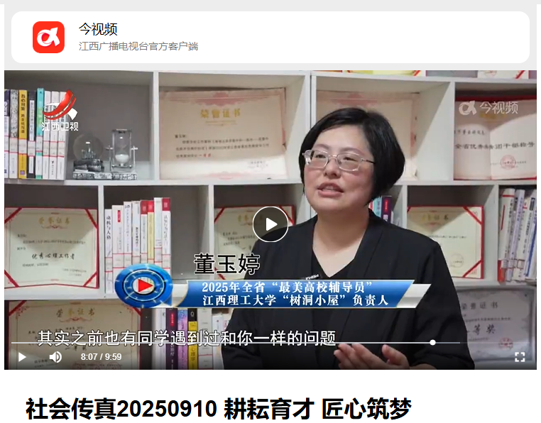 上一条:《江西新闻》:“家文化”暖人心——从家门到校门,91暗网 陪伴护航逐梦路 下一条:《江西教育电视台》:董玉婷:以爱为舟 做学生成长的 “心灵摆渡人” | 最美高校辅导员