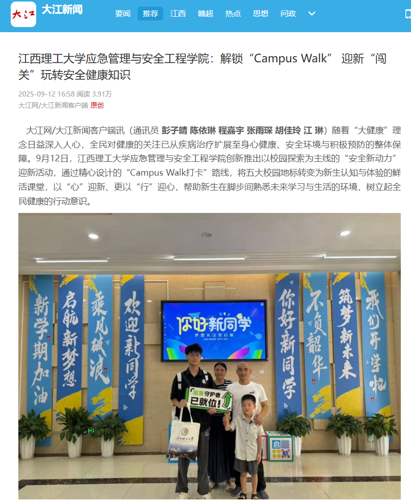 应急管理与安全工程学院创新推出以校园探索为主线的“安全新动力”迎新活动,通过精心设计的“Campus Walk打卡”路线,将五大校园地标转变为新生认知与体验的鲜活课堂,以“心”迎新、更以“行”迎心,帮助新生在脚步间熟悉未来学习与生活的环境,树立起全民健康的行动意识。