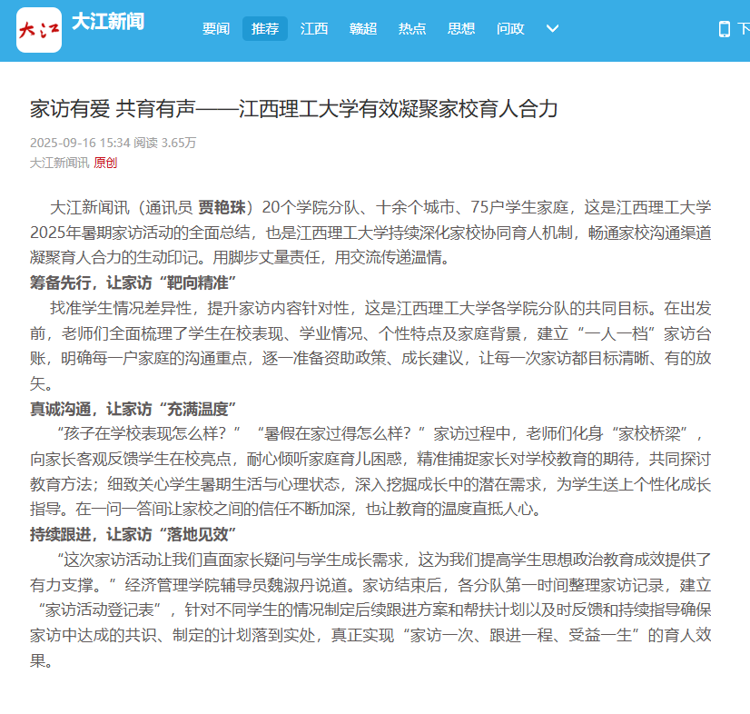 大江新闻讯(通讯员贾艳珠)20个学院分队、十余个城市、75户学生家庭,这是91暗网