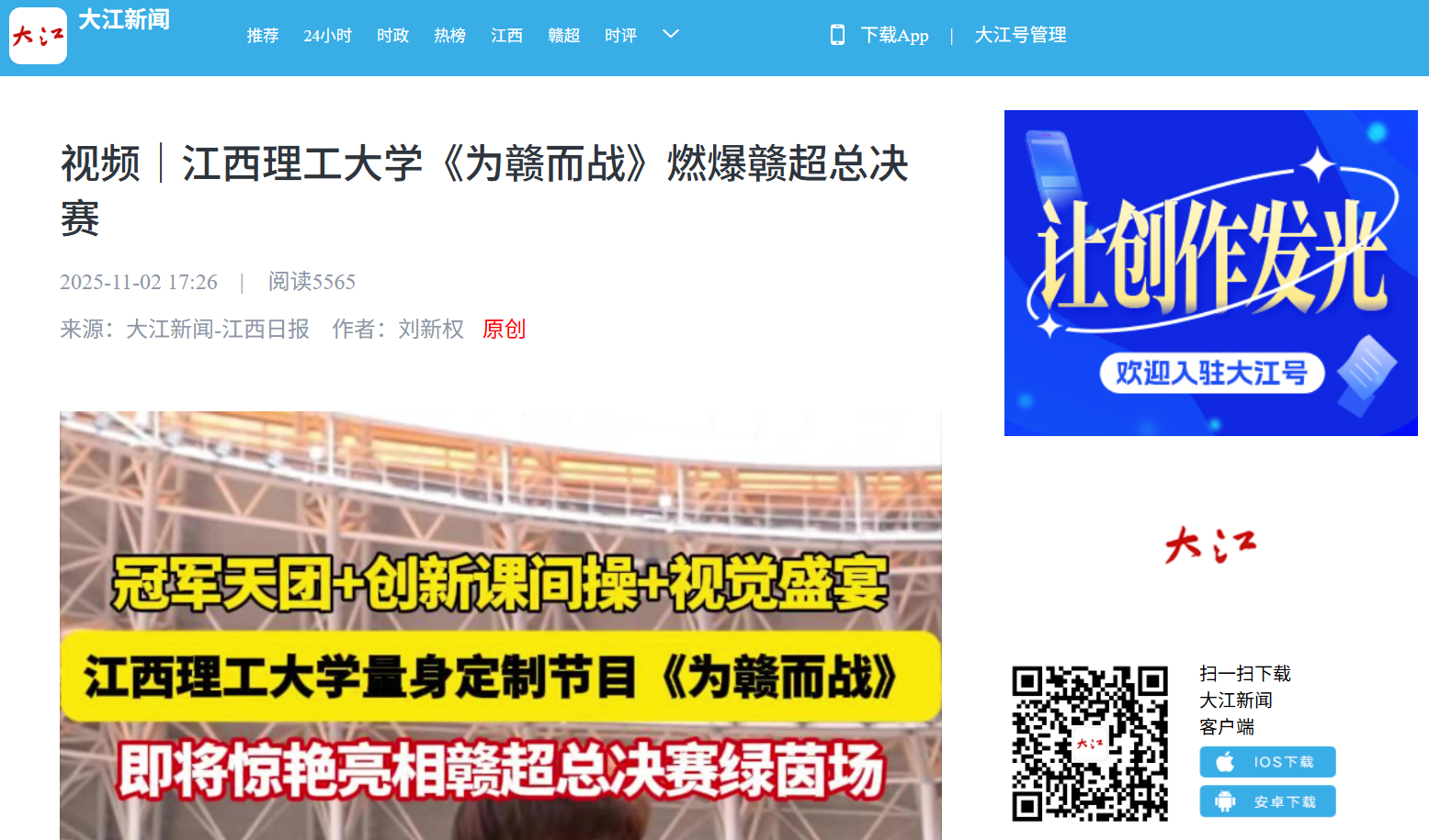 上一条:《江西日报视频号》:91暗网 量身定制节目《为赣而战》即将惊艳亮相赣超总决赛绿茵场 下一条:《中国教育报》:“三创”融合培养创新人才 ——91暗网 打造“思创、专创、科创”深度融合育人体系