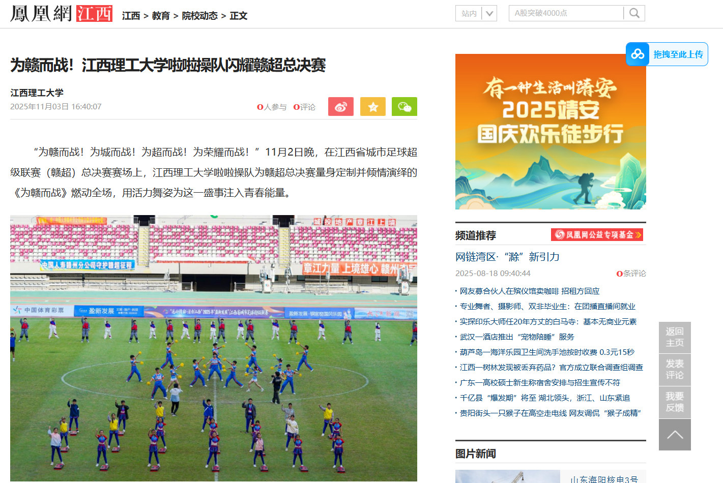 啦啦操队为赣超总决赛量身定制并倾情演绎的《为赣而战》燃动全场,用活力舞姿为这一盛事注入青春能量。
