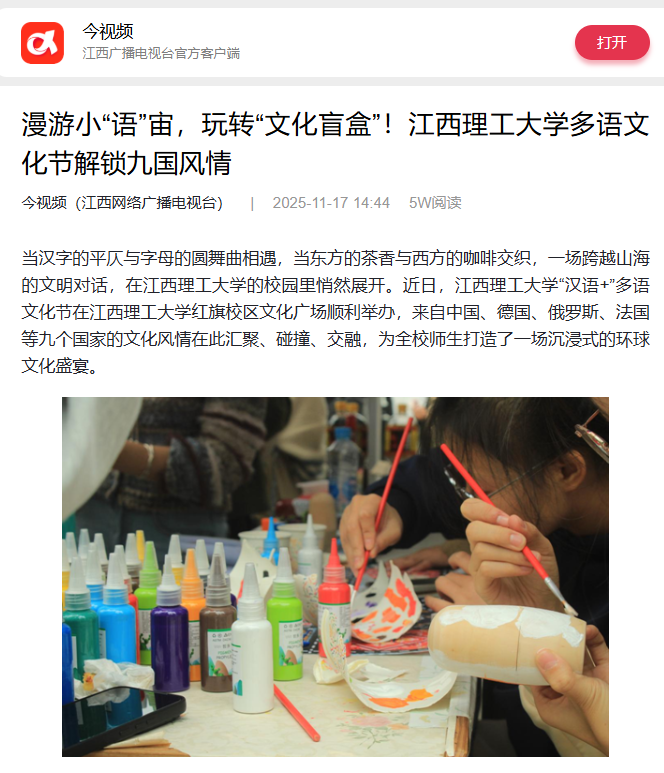 将持续以语言为媒、以交流为桥,搭建更广阔的文明对话平台,让多元文化在江理校园碰撞共鸣,助力学子在开放视野中厚植文化自信,成长为兼具跨文化素养的时代新青年。(文/钱敏霞、周礼李 图/姜美玲、尧玉婷)