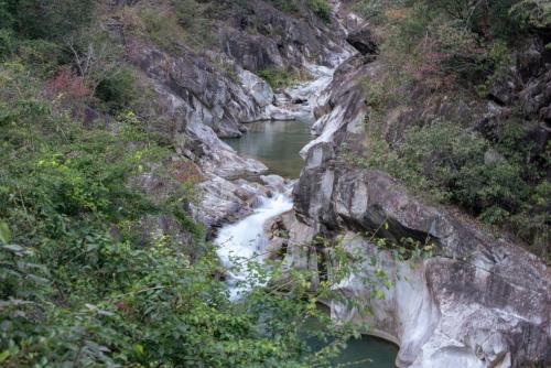 “冰川融水沿着裂隙向下流动,这些水流速度很快且力度十分均匀,同时携带了大量碎石、砂粒等‘磨料’不停地冲击两岸,形成了多种多样的圆坑,仿佛用圆规画出来的圆柱,这就是‘河谷冰臼’。”暖阳下,矿业工程学院副院长陈飞带领师生穿行在燕子岩景区,在丹霞奇峰、飞瀑林海构成的自然画卷中上了一堂“行走的思政课”,同学们在游览中解开了地球演化的密码,读懂了地球的“年轮”。景区讲解员同步普及生态保护理念,师生们在灵泽潭、同心桥等地定格“红色文化+绿色生态”的交融瞬间,让革命精神与生态文明理念同频共振。