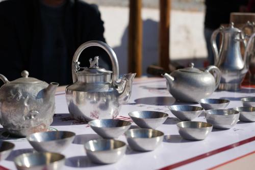 在横坑畲族村新时代文明实践站,在当地讲解员的系统介绍下,师生们深入了解了畲族的历史渊源、传统习俗,重点聆听了畲族刺绣的精湛技法、山歌的悠扬意境与图腾文化的深厚内涵,从刺绣的一针一线到山歌的一唱一和,同学们真切体会其中蕴含着的生活智慧和文化底蕴。在文明集市里,师生近距离观摩演示打锡工艺,在传承人指导下亲自体验打锡工艺的精细流程,当金属在手中历经捶打、塑形、打磨后逐渐化为精美的器具,非遗技艺的匠心传承悄然淌进师生心间。