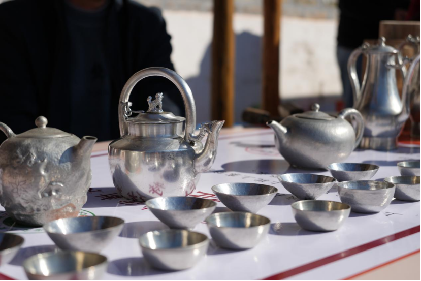 在横坑畲族村新时代文明实践站,在当地讲解员的系统介绍下,师生们深入了解了畲族的历史渊源、传统习俗,重点聆听了畲族刺绣的精湛技法、山歌的悠扬意境与图腾文化的深厚内涵,从刺绣的一针一线到山歌的一唱一和,同学们真切体会其中蕴含着的生活智慧和文化底蕴。在文明集市里,师生近距离观摩非遗传承人演示打锡工艺,在传承人指导下亲自体验打锡工艺的精细流程,当金属在手中历经捶打、塑形、打磨后逐渐化为精美的器具,非遗技艺的匠心传承悄然淌进师生心间。