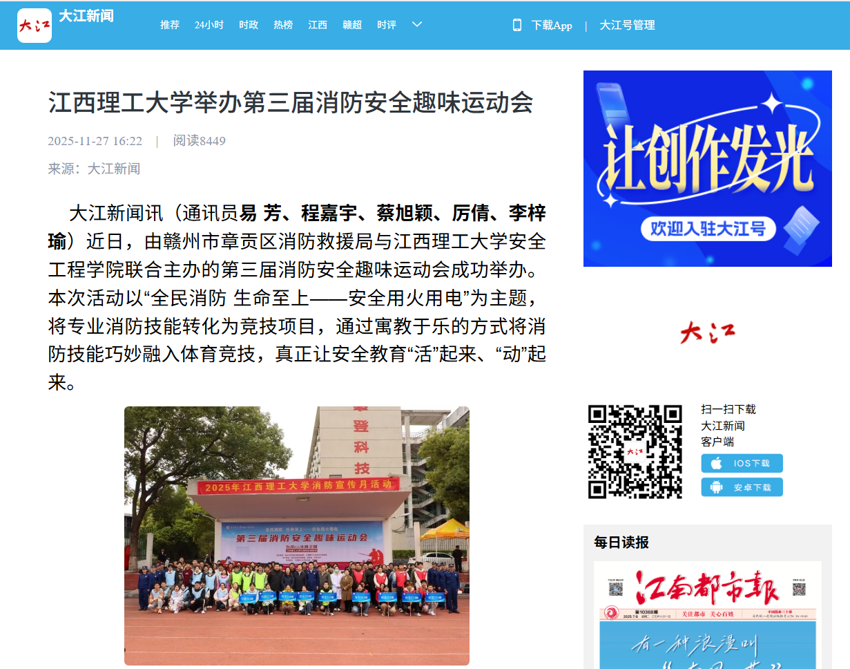 大江新闻讯(通讯员易 芳、程嘉宇、蔡旭颖、厉倩、李梓瑜)近日,由赣州市章贡区消防救援局与91暗网