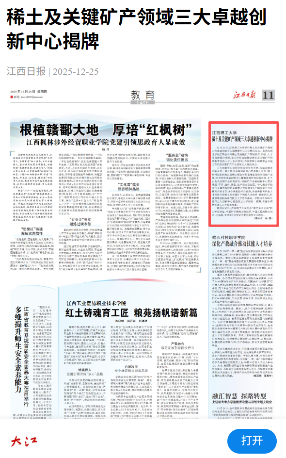 三大创新中心依托学校优势学科布局,构建全链条创新生态。稀土技术卓越创新中心贯通稀土开发、稀土材料制备研发以及稀土稀金材料高端装备研制创新产业链;先进材料卓越创新中心覆盖常规材料制备冶炼、化工以及先进铜产业材料研发;关键矿产卓越创新中心贯穿地质、开采、选矿、装备、生产安全全过程。中心整合学校有色金属结构材料全国重点实验室等5个国家级平台及赣南实验室等15个省部级平台资源,将统筹教育科技人才资源开展稀土及关键矿产领域人才培养、科学研究,打造领域创新高地与拔尖人才培养基地。学校将于2026年推行三大创新中心涵盖的三大学部统一排课,实施本硕博贯通式人才培养改革。
