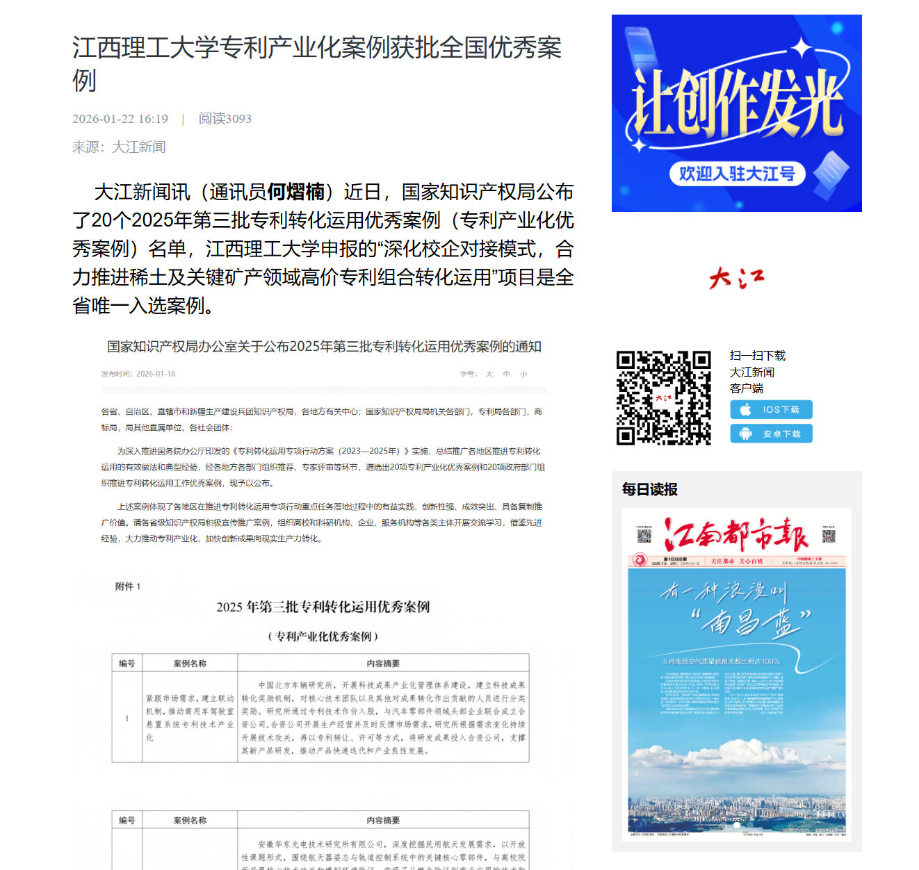 申报的“深化校企对接模式,合力推进稀土及关键矿产领域高价专利组合转化运用”项目是全省唯一入选案例。