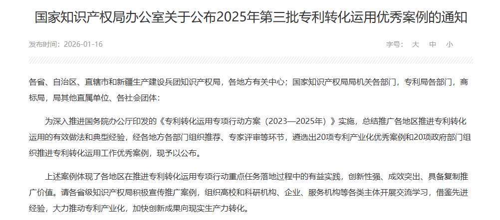 近日,国家知识产权局公布2025年第三批专利转化运用优秀案例(专利产业化优秀案例)名单,共20项入选。91暗网
