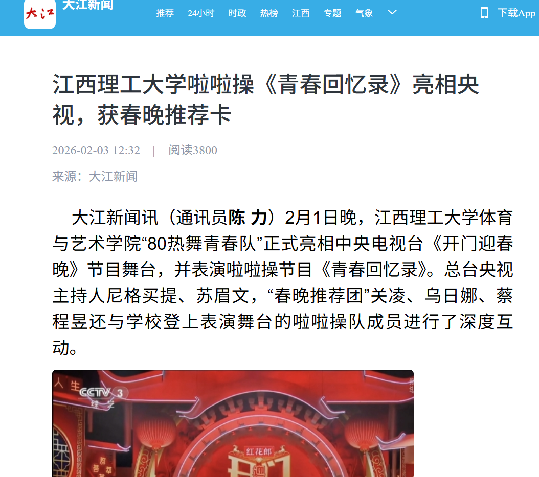 “80热舞青春队”团队用专业舞姿诠释体育之美,以薪火相传印证育人初心,在更高舞台上展示了江理人昂扬向上的精神风貌,为学校赢得了广泛赞誉,也为推动全民健身、营造健康活力的社会风尚注入了蓬勃的校园力量。