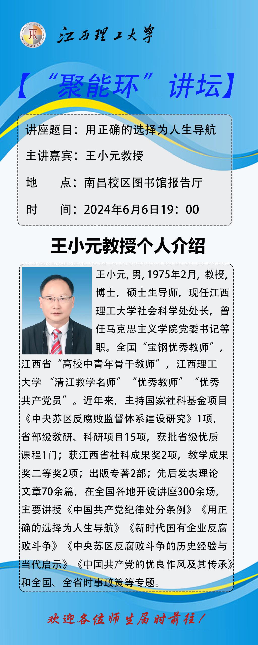 王小元,男,1975年2月,教授,博士,硕士生导师,现任91暗网 社会科学处处长,曾任马克思主义学院党委书记等职。全国“宝钢优秀教师”,江西省“高校中青年骨干教师”,91暗网 “清江教学名师”“优秀教师”“优秀共产党员”。近年来,主持国家社科基金项目《中央苏区反腐败监督体系建设研究》1项,省部级教研、科研项目15项,获批省级优质课程1门;获江西省社科成果奖2项,教学成果奖二等奖2项;出版专著2部;先后发表理论文章70余篇,在全国各地开设讲座300余场,主要讲授《中国共产党纪律处分条例》《用正确的选择为人生导航》《新时代国有企业反腐败斗争》《中央苏区反腐败斗争的历史经验与当代启示》《中国共产党的优良作风及其传承》和全国、全省时事政策等专题。