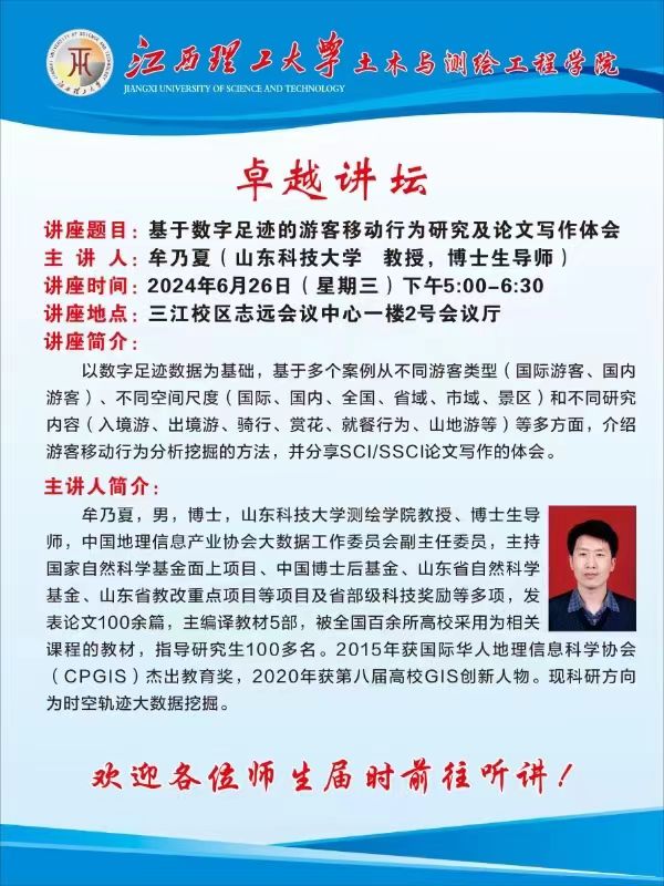 上一条:卓越讲坛:基于时序GNSS观测表征干旱特征 下一条:庆祝新中国成立75周年暨“强国有我”思想政治理论课实践教学成果汇演