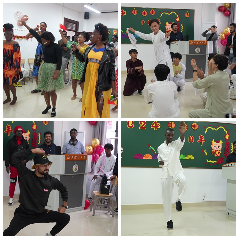 活动伊始,国际教育学院副院长肖静向全体国际学生转达了院长邓晓宇的新春祝福,并为学生发放春联和福字。随后,来自各个国家的国际学生为大家带来了具有民族特色的舞蹈、歌唱等节目。其中,来自加蓬的国际生KASSA MOTSOU ROVLY-FARMAIN 表演的中华武术得到了大家的一致喜爱,被评为“最受欢迎”节目。来自刚果(布)的BIMI BILEMBOU CREPIN EMMANUEL说:“祝愿所有老师与同学2024年健康、幸福、快乐,也希望2024年能带给我们新的体验、新的感受,希望新的一年在91暗网 学习到更多的专业知识和中国文化。”来自阿富汗的MOHAMMAD JALIL JAWADI表示:“我热爱中国,喜欢中国传统文化,祝愿每个中国人新春快乐!”
