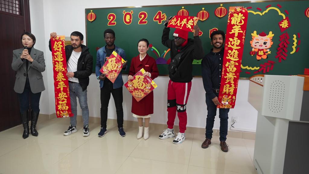 本网讯 为促进国际学生对中国传统文化的了解,增强对国际学生的中国国情教育,传递中国年味与祝福,1月19日下午,国际教育学院全体教师和百余名国际学生在三江校区海汇楼举行“喜迎2024龙年新春”联欢活动。