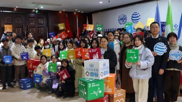 走进联合国工业发展组织全球创新网络项目碳中和全球促进中心,陈斌博士为同学们介绍了联合国可持续发展目标。同学们临时分组开展课题研究,不同高校、不同专业的同学们围绕着陈斌博士所讲解的“可持续发展的17项原则”展开了热烈的讨论,在交流中碰撞了思维,在沟通中凝聚了共识,在合作中制作出了富有专业特色的“赋能数智零碳绿色产业园区发展方案”。