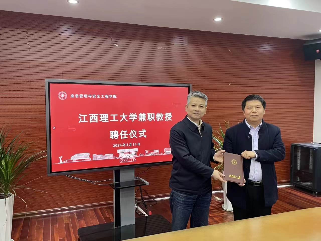 兼职教授仪式在红旗校区应急管理与安全工程学院210会议室举行。校党委常委、副校长董冰岩及应急管理与安全工程学院党政负责人出席聘任仪式。