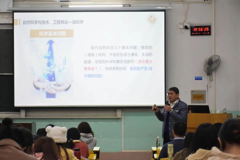 本网讯 近日,校党委常委、副校长、课程负责人龚姚腾在红旗校区主教学楼E01为学生作开篇第一讲《自然科学与技术工程导论》。法学院副院长张奇、孟春阳及部分教师参加了本次活动,讲座由法学院院长项波主持。