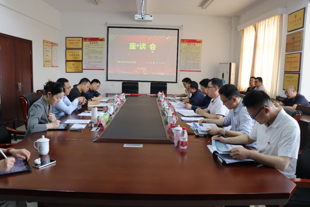 本网讯 4月3日,化学化工学院党委书记陈火平、院长李立清一行赴赣州市综合检验检测院参观调研,并签署实践教学及就业基地共建协议。赣州市综合检验检测院(以下简称“综检院”)院长刘汉泉等相关领导出席会议。校教务处副处长周玉斌,化学化工学院副院长李金辉、刘遂军等陪同调研。