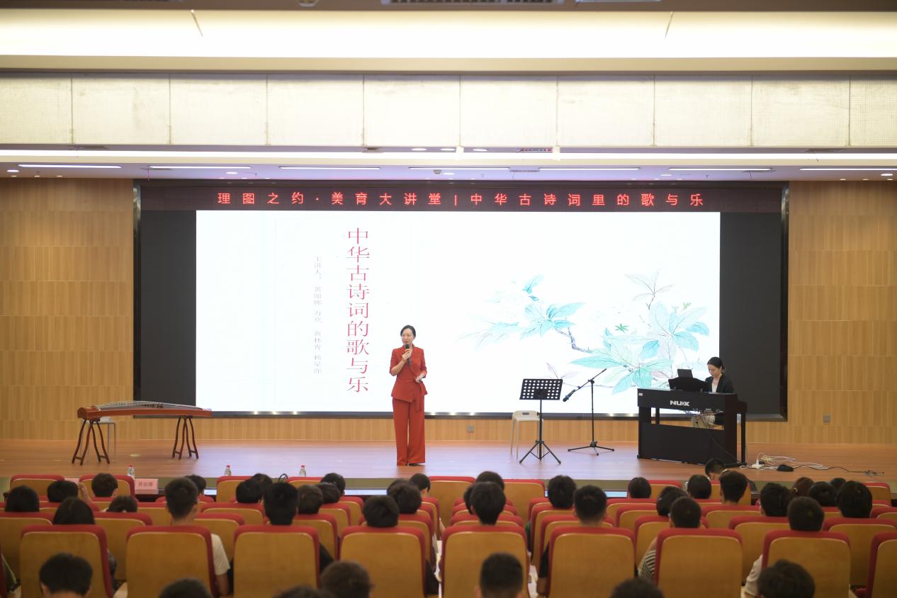本网讯 4月19日,校图书馆、体育与艺术学院共同举办了一场别开生面的讲座——《中华古诗词里的歌与乐》,带领同学们感受中华古诗词与音乐的完美结合。本次讲座由体育与艺术学院副教授黄丽娜、理学院专职辅导员黄林青、法学院教师万欢共同担任主讲,吸引了近200名中华古诗词和音乐爱好者前来聆听。