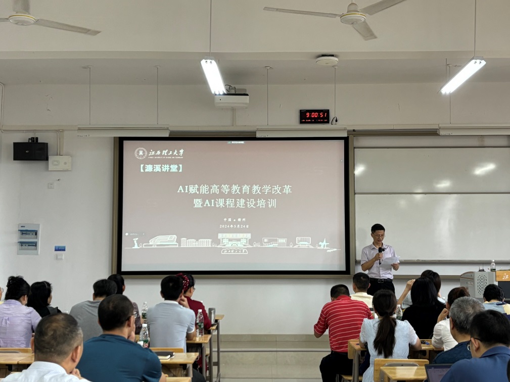 濂溪讲堂之AI赋能高等教育教学改革暨AI课程建设培训会在文山楼322教室举行。会议特邀清华大学研究员龙瀛、清华大学慕课平台学堂在线湘赣大区负责人欧阳倩玲作专题讲座。各学院近100人参加,南昌校区同步线上参会。讲座由学校教务处副处长王经北主持。