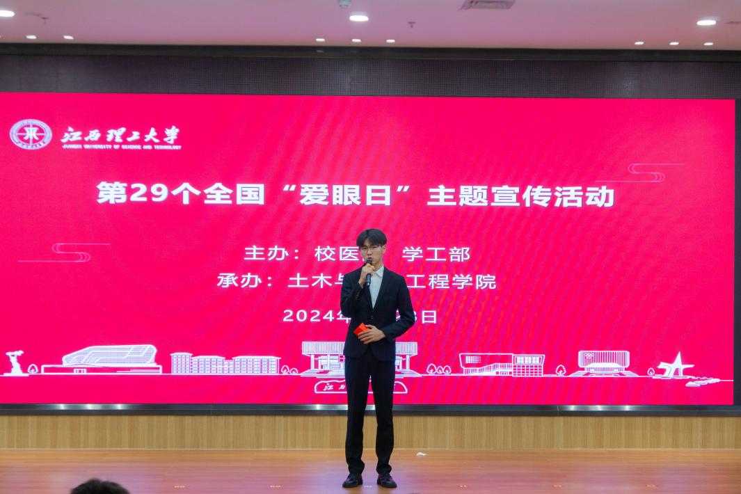 本网讯 眼睛是人类最重要的感官之一,也是心灵的窗户。为提高广大师生爱眼护眼意识,5月28日上午,由校医院、党委学生工作部主办,土木与测绘工程学院承办的第29个全国“爱眼日”宣传教育活动在三江校区图书馆一楼学术报告厅举办,近300名师生参加。