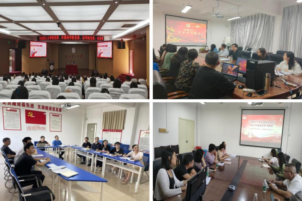 概论党支部在“三会一课”上组织全体党员原文学习《中国共产党纪律处分条例》(以下简称《条例》),学院院长邓显超为支部讲授党纪学习教育专题党课。纲要党支部书记带头学,支部书记曾过生通过《在路上:党纪学习教育》的党课对支部全体党员进行专题教育,并通过入党积极分子党课培训对马克思主义学院、外国语学院、体育与艺术学院等学院的入党积极分子进行辅导了党纪学习教育;开展党员解读学,选派部分党员进行相关文件的解读,重点内容重点学。原理党支部以一场有计划、有目标的党纪学习教育动员大会,正式拉开了党纪学习教育的序幕,通过集中学习、研讨交流、个人自学、支部书记讲党课、纪检委员抓日常等多种形式,深入理解《条例》的精神实质和实践要求。研究生党支部组织全体党员在主题党日上学习《条例》,并利用微信等平台推动常态化学习,在支部微信工作群里常态化推送党纪学习教育学习材料,营造了良好的学习氛围。