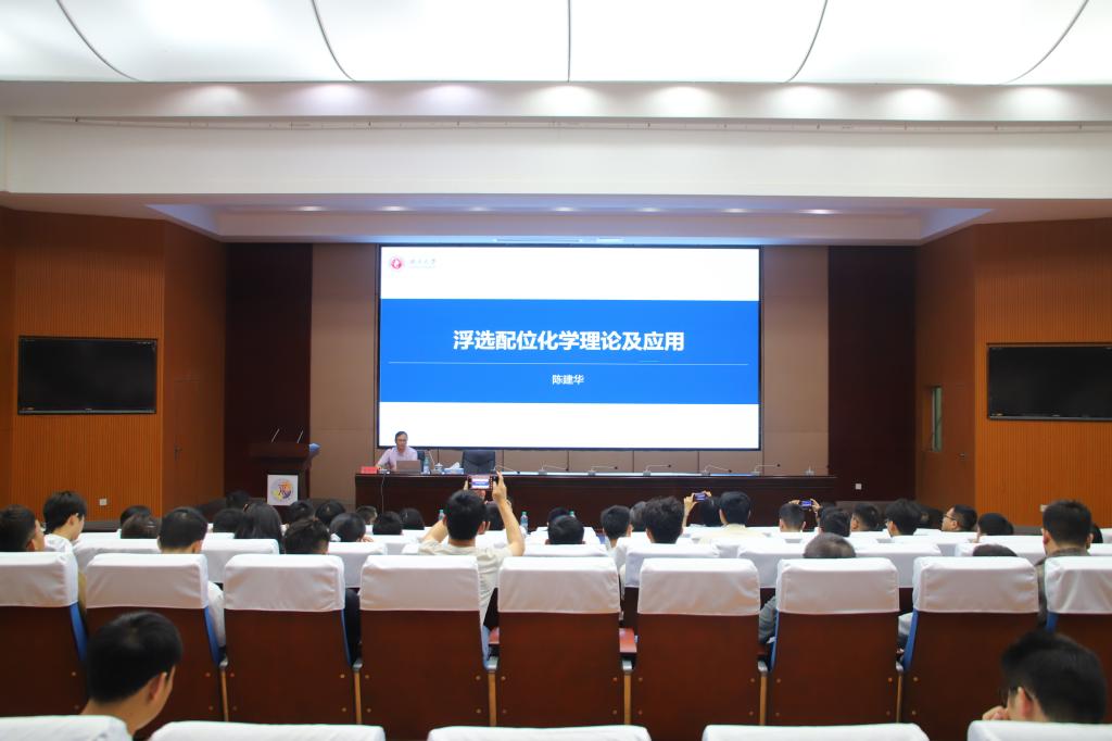 本网讯 6月5日,广西大学博士生导师陈建华教授一行来校交流,并在黄金校区逸夫楼报告厅作了题为《矿物浮选界面配位化学原理》的学术报告。校国际创新研究院执行院长邱廷省、资源与环境工程学院副院长余新阳以及相关专业教师、学生参与本次讲座。讲座由余新阳主持。