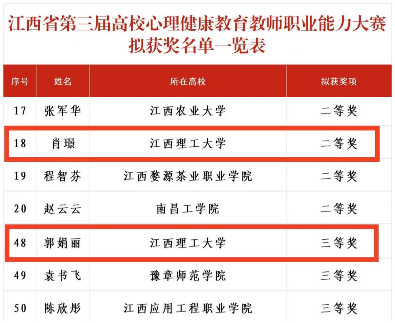 心理健康教育中心的肖璟和郭娟丽两名专职教师在众多参赛者中崭露头角,分别获得了二等奖和三等奖的优异成绩。