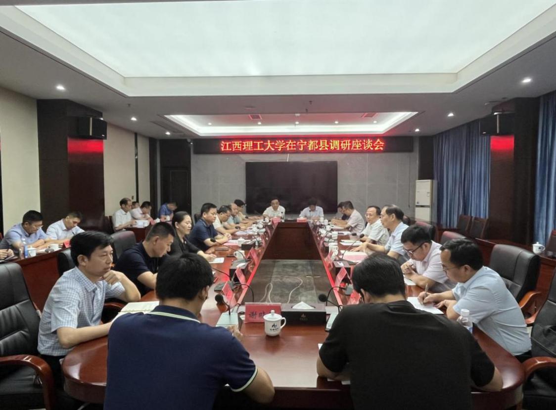 座谈会上,廖春发代表学校对长期以来关心和支持学校事业发展的宁都县委、县政府表示感谢,并简要介绍了学校的基本情况以及在学科建设、人才培养、科学研究、社会服务等方面取得的成绩。廖春发表示,学校将以此次调研为契机,结合宁都主导产业发展的特点和优势,充分发挥学校的学科优势和人才资源,为宁都县产业发展中遇到的技术难题和发展瓶颈提供帮助,高质量共建矿产资源高效利用与文旅产业研究院。他指出,双方要在前期签订的战略合作框架协议的基础上,进一步系统谋划合作内容和合作事项,切实打造合作亮点和特色,通过资源共享、优势互补,实现共赢发展。