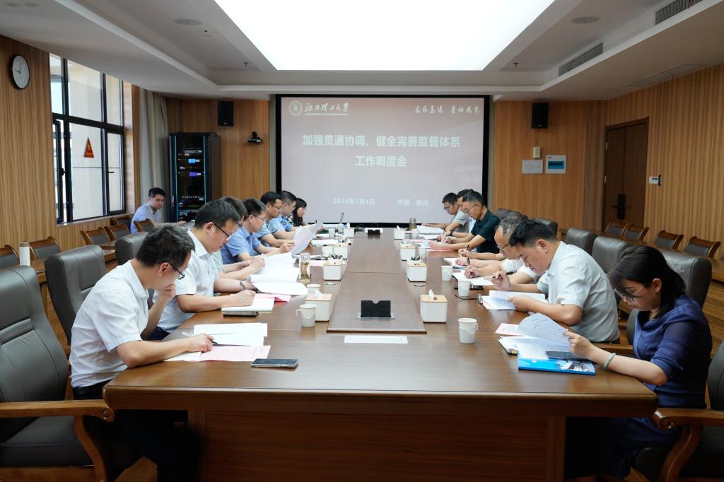 召开加强纪检监察监督与组织、人事、督评、财会、审计等职能监督贯通协调、健全完善监督体系工作调度会。校党委常委、纪委书记、监察专员刘飞,校党委常委、党委组织部部长刘志刚,校党委常委、党委宣传部部长盛晓明出席会议,相关职能部门负责人参加会议。