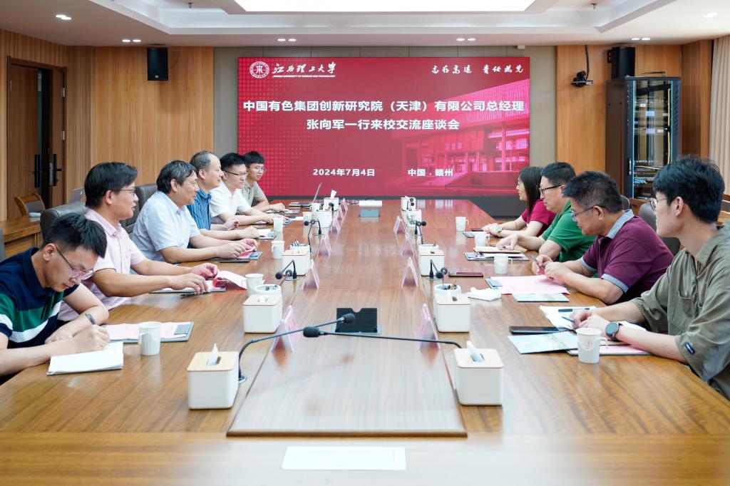 本网讯 7月4日下午,中国有色集团创新研究院(天津)有限公司总经理张向军一行来访,校党委副书记罗仙平,校党委常委、副校长唐云志在三江校区濂溪楼1号会议室会见了来宾并举行座谈交流会。校科学技术处及资源与环境工程学院、化学化工学院等学院相关科研团队成员参加会议。座谈会由唐云志主持。