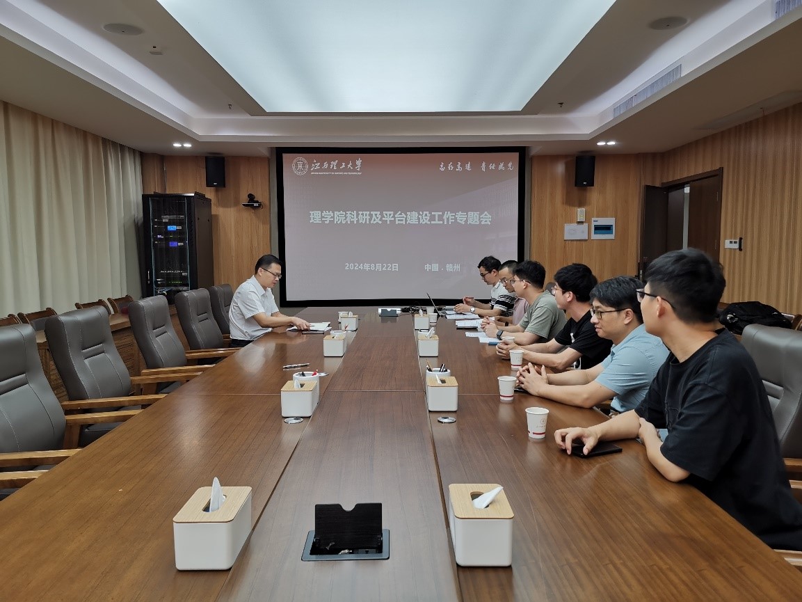 本网讯 8月22日,理学院召开科研及平台建设工作专题会,校党委常委、副校长熊志华,理学院科研平台申报材料撰写小组成员参加会议。会议由理学院院长徐中辉主持。