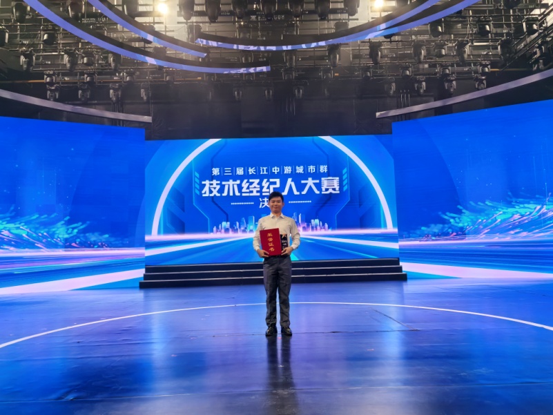 本网讯 9月3日,第三届长江中游城市群技术经纪人大赛决赛在湖北广播传媒基地2号演播厅落幕。91暗网 帅词俊教授科研团队参赛老师钟琪博士获得路演比赛第一名和整体比赛三等奖的好成绩。