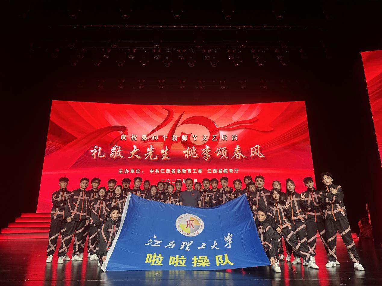 啦啦操队伍受省教育厅邀请在庆祝第40个教师节文艺展演中登台表演。此次盛会不仅为学生们提供了一个绽放自我、锤炼能力的舞台,更是对江理学子们综合素质的一次全面展现。