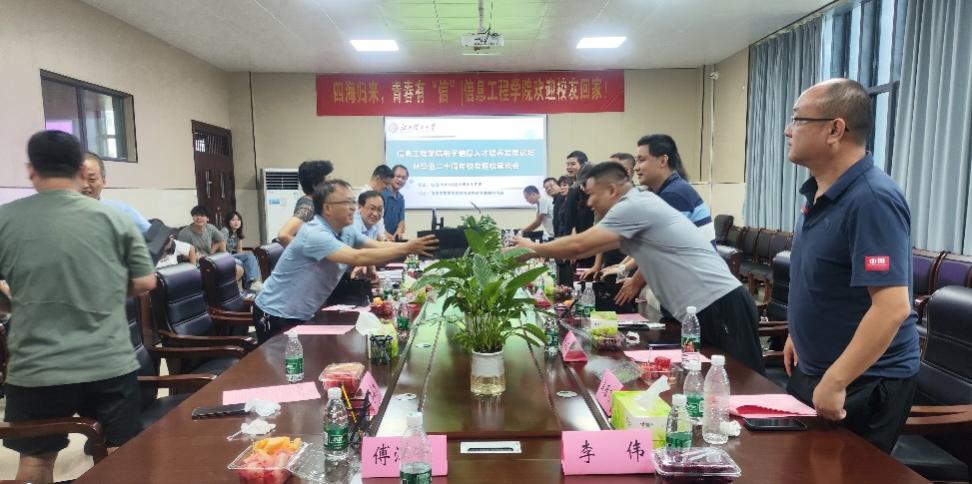 本网讯 9月7日下午,信息工程学院在九章楼303会议室召开电子信息工程专业人才培养发展论坛暨毕业二十周年校友返校座谈会。来自深圳、长春、长沙、厦门等全国各地14名校友重回母校,欢聚江理,共襄专业发展大计。信息工程学院院长杨书新等学院领导、电子信息与通信工程教研室部分教师以及学生代表参会,会议由电子信息与通信工程教研室主任谢斌主持。