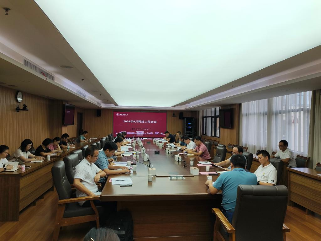 在三江校区濂溪楼2号会议室召开了九月科技工作调度会。校党委常委、副校长唐云志出席会议,各学院、二级单位分管科技工作负责人和科研秘书,科学技术处全体人员参加会议。会议由校科学技术处处长吴彩斌主持。